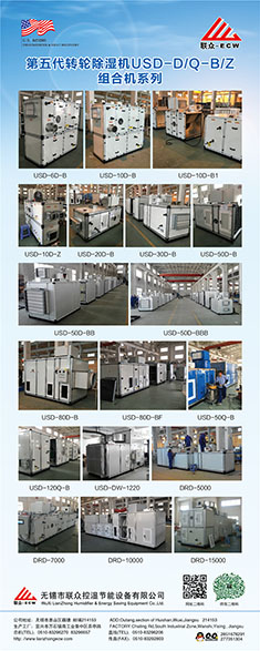 無錫市聯眾控濕節能設備有限公司成立于2004年2月,是一家長期致力于把空氣吸附分離技術應用于空氣處理設備的科技型中外合作 企業,主要研發生產轉輪除濕機組、熱泵除濕機組、空氣與空氣熱 能交換回收機組、蒸發冷卻空調機組、有機廢氣凈化處理機組等非 標空氣處理設備。隨著生產規模的不斷壯大和產業化的精細分工, 聯眾公司與2011年10月在江蘇省宜興市萬石鎮工業園茶亭路8號, 一期投資5000萬元,置地25畝、建標準工業廠房10000平方米和辦 公樓3000平方米,重新注冊成立江蘇聯眾聯勝節能設備有限公司。 企業領導層決定確立江蘇聯眾聯勝公司以研發生產蒸發冷卻空調機 組、有機廢氣凈化處理機組等大型節能環保空氣處理設備為主;而無錫聯眾控濕公司則在無錫繼續以研發生產轉輪除濕機組、熱泵除濕機組、空氣與空氣熱交器為主。在國內暖通空調工程領域,聯眾控濕公司研發各類轉輪除濕機的技術能力、生產各類轉輪除濕機的 裝備制造工藝水平處于本行業前沿。